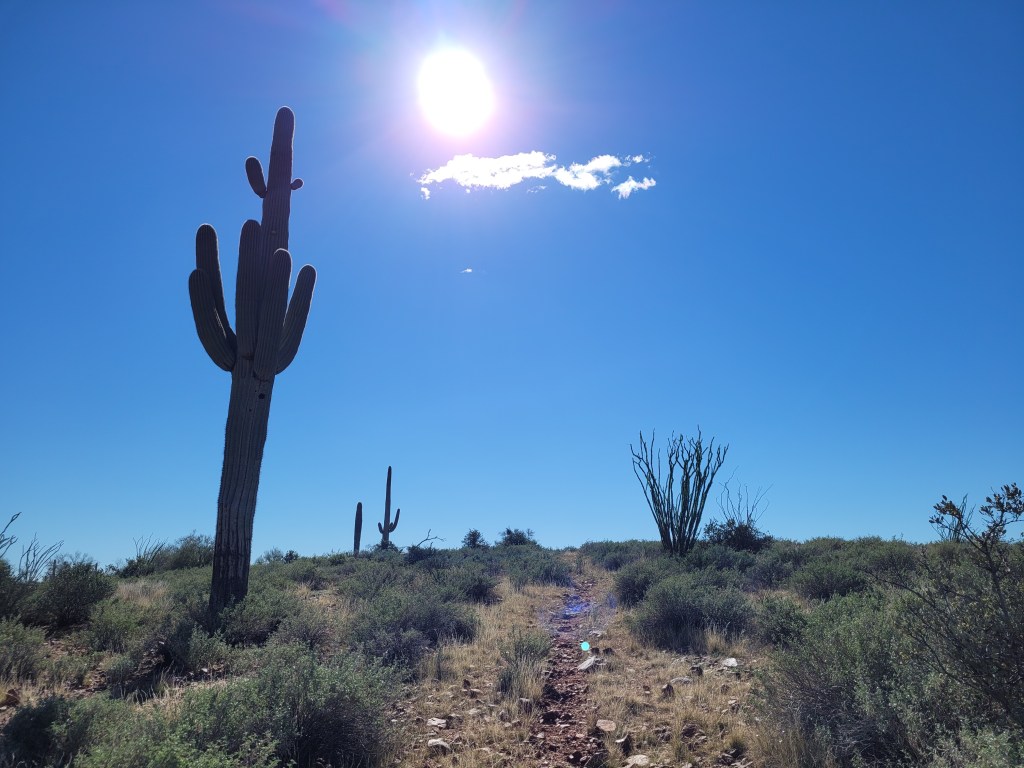 I walked up a semi-groomed trail and found myself at the Ribbon of Life Monument. It is a monument to those who lost their lives in the Superstition Mountains through aviation accidents. A remnant of the plane that killed the family is there. I carried on about a half mile, enjoying the sights then made my way back.