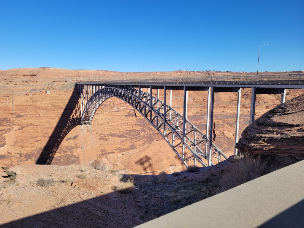 I never noticed how close the hotel was to the Glen Canyon Dam until I was driving back. There was a hiking trail right across the road leading all the way to the dam. The weather had warmed up and I still had lots of daylight left, so off I went. The trail was maybe 3-4 km round trip and over mostly flat terrain. It was also clearly marked with stones showing the way.
