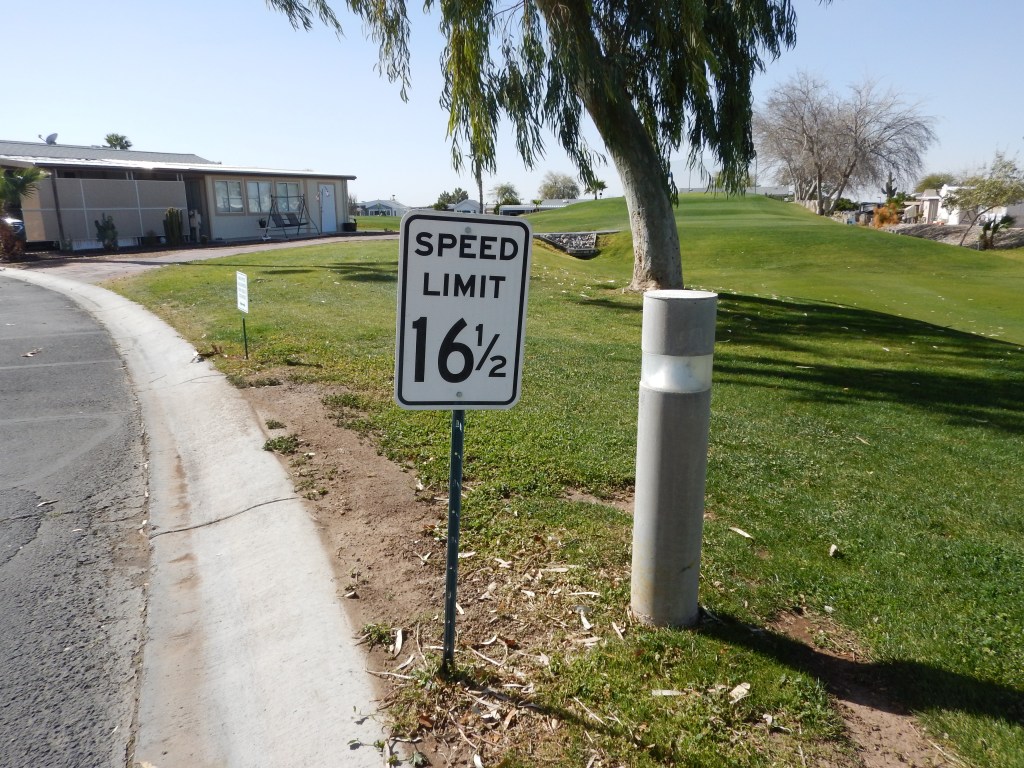 The next day, June took me on a walking tour of the complex and recreation centre. The rec centre was built with 1500 homes in mind. Since there are only half that number, the space is luxurious and spacious. They have a full workout room, billiards room, separate crafts rooms, a huge common area for TV events like the Super Bowl, a huge gymnasium looking room that I saw being used for a Murder Dinner Theatre event, a bistro and patio area for outdoor concerts. There is a swimming pool, about 12 shuffleboard lanes, and about 6 pickle-ball courts. The entire rec centre is surrounded by a 9 hole golf course. There is also a long wall with all the activities and events that one can take part in – everything from knitting to hiking. If you are bored at Gold Canyon – you deserve to be dead!! June’s twin sister, Joan, got me a guest pass.