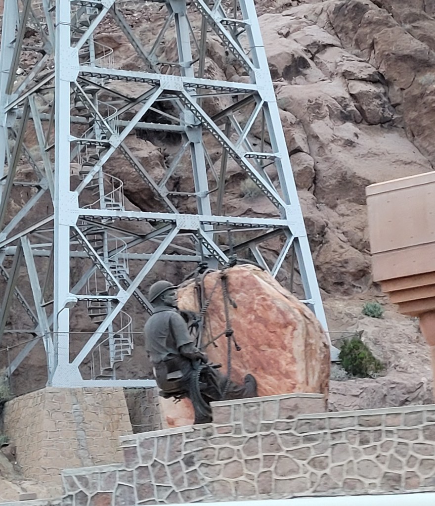 I couldn’t pass Hoover Dam without stopping. A dam was talked about since 1900 in response to control the flooding and droughts that wreaked havoc on lands bordering the Colorado River. It was constructed between 1931 and 1936; a make-work project during the Great Depression. It was completed 2 years ahead of schedule. Thousands of workers working 363 days a year were employed. You read the right, they got 2 days off a year! 96 died in the building of the 726 foot (221 m) structure. This number does not include the deaths that occurred due to pneumonia – which was alleged to be a cover for the carbon monoxide poisonings from gas fueled vehicles in the tunnels.