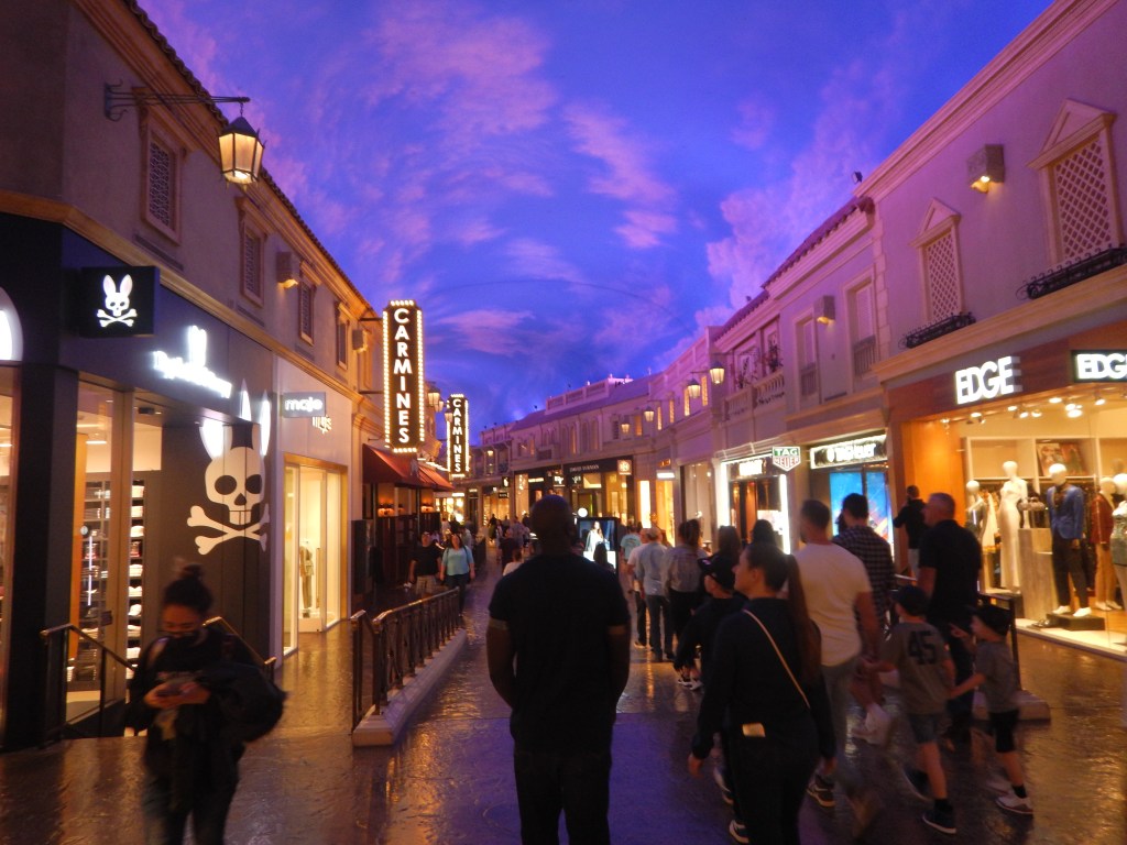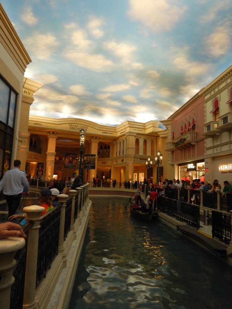 Caesar’s Palace had Roman statues. The Luxor had Egyptian motifs. The hotel shopping malls had stores like Gucci, Chanel, Dior, Fendi, Louis Vuitton, Prada, Tiffany, Valentino. Not a Winners or TKMax to be seen. The mall ceilings were painted to look like a sunny sky with a few puffy clouds. It was so realistic, it played tricks on the senses.