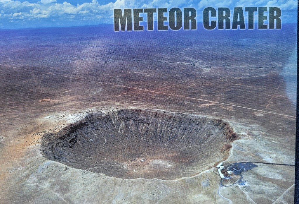 The next day I headed for Meteor Crater. As generally happens when I travel, I have a plan but get detoured by other travellers to locations I had never heard of. This was one of them. 61,000 years ago a meteor, travelling at 26,000 mph (43,000 km) slammed into the earth, near Winslow. The huge iron-nickel meteorite, estimated to be 150 ft (46 m) across, and weighing several hundred thousand tons struck the earth with an explosive force of more than 20 million tons of TNT- 150 times the Hiroshima atomic bomb.