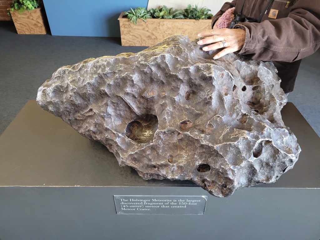 The site is privately owned by the Barringer family. Mr. Barringer was a miner and filed mining claims on the crater, hoping to find iron. He never did find the meteorite. The site has remained in the family for four generations. The only big evidence of the meteorite is a large fragment that is on display in the visitor centre. It is only about 2 ½ feet across but weighs 1409 lbs (639 kg) and is valued at over 2 million dollars. I bought a quarter-sized piece in the gift shop. It looks like an ordinary rock but will stick to a magnet. Cool toy!