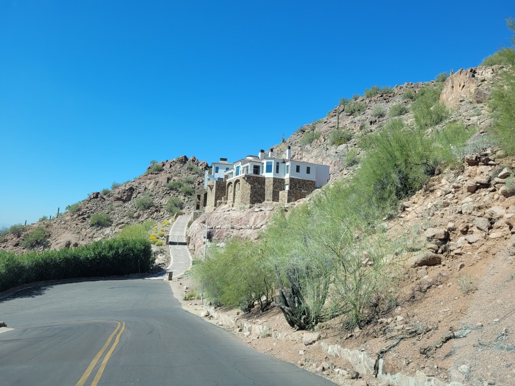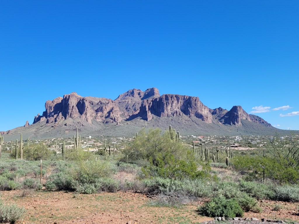 Jim pointed out Superstition Mountain, nestling Apache Junction, on the 20 minute ride back to his home. The mountain range is famous for the Lost Dutchman’s Gold Mine – a German immigrant claimed, on his deathbed, to have found the mother lode of gold which has had treasure hunters searching for it in vain for over 100 years. Its current fame is for a plane crash claiming the lives of 3 men and one of the men’s 3 young children. The top of the mountain has an upward sloping protrusion that looks like a ship’s bow called Shiprock peak. Witnesses say the plane missed this peak by several hundred feet.