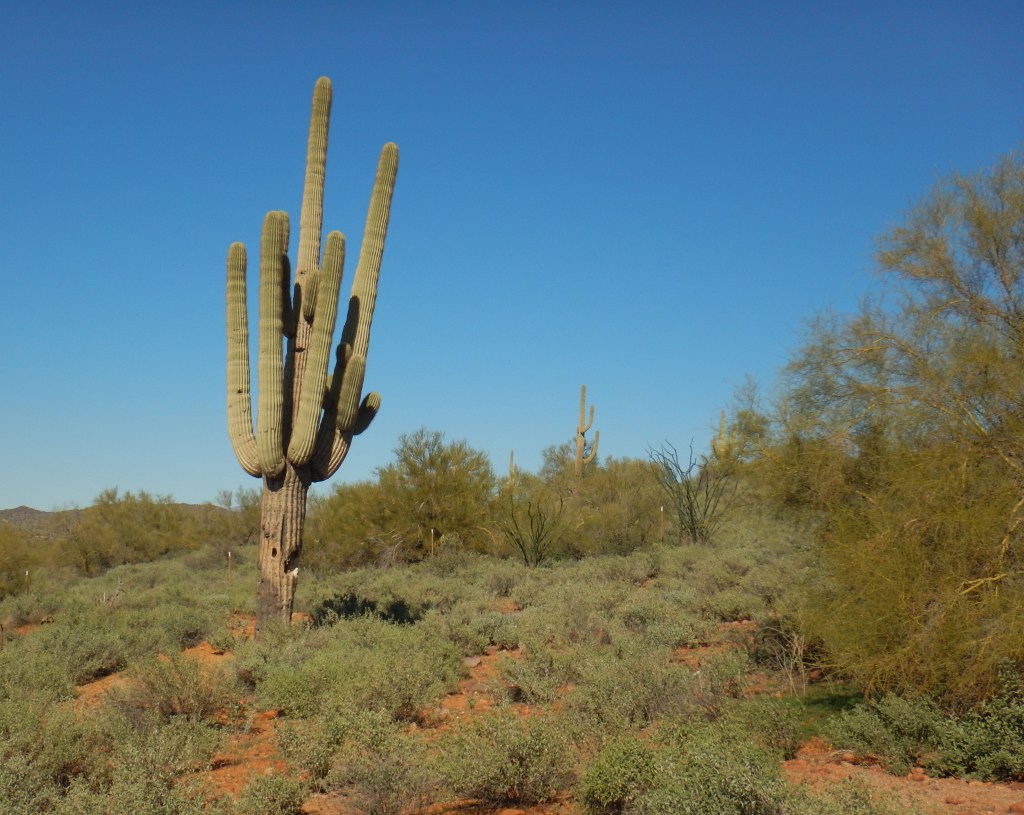 My first impression of the Mesa area was the saguaro cactus. Other than the modern buildings, the landscape looked right out of an old western. Saguaros are tall cactus with arms. They only grow at certain elevations and can reach 12 metres (40 feet) tall. They can live over 150 years, but don’t grow their first “arm” for about 75 years. Their woody vertical ribs help hold them up, which they need as they can weigh as much as 1500-2200 kg (3200-4800 lbs). It is a felony to damage one of these protected plants.