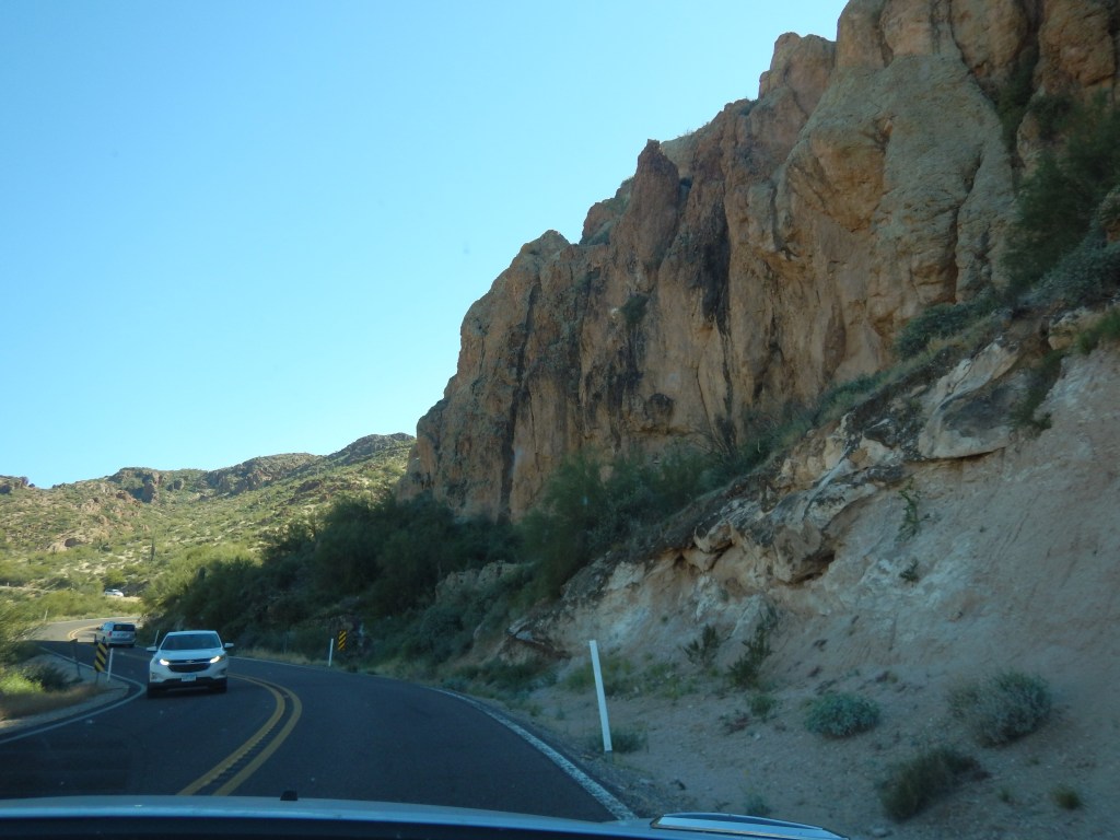 We drove along a crazy crooked road full of switchbacks, steep cliffs and threatening boulders waiting to fall. It was a beautiful drive, and I am glad it was not me behind the wheel. We finally reached Tortilla Flat only to discover that there was NO parking available. For a little place in the middle of nowhere, it sure was busy. There was a lineup waiting to enter the restaurant/bar. It looked like Boxing Day shoppers in the desert. I did notice that a burger was $15. We turned around and went back home.