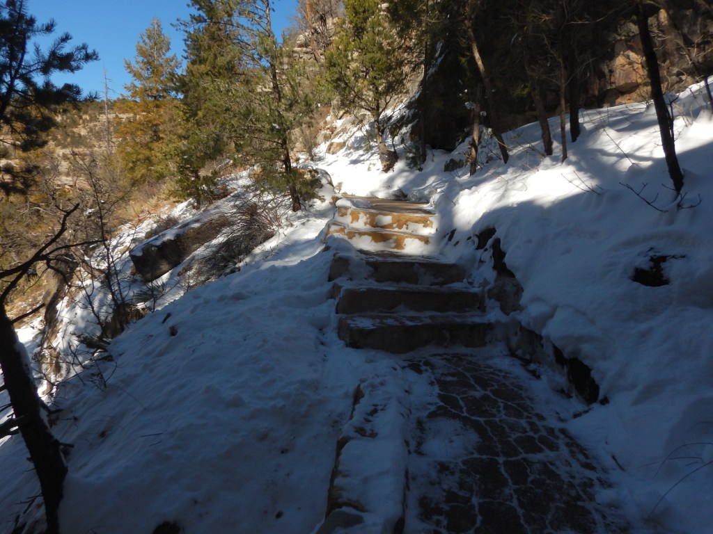 Cliff dwellers used to live in natural alcoves tucked into the cliffs about 800-900 years ago. The visitor center cautioned me that there were 736 steps taking me down 370 ft (122 m) on the mile-long round trip hike. Let’s go!