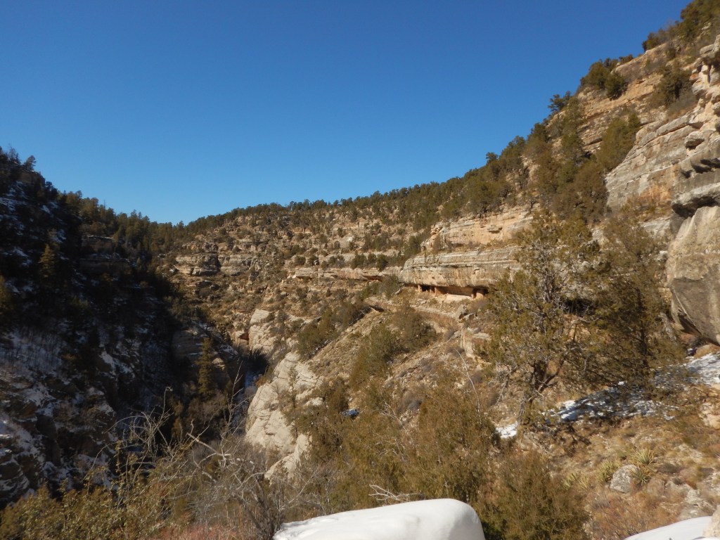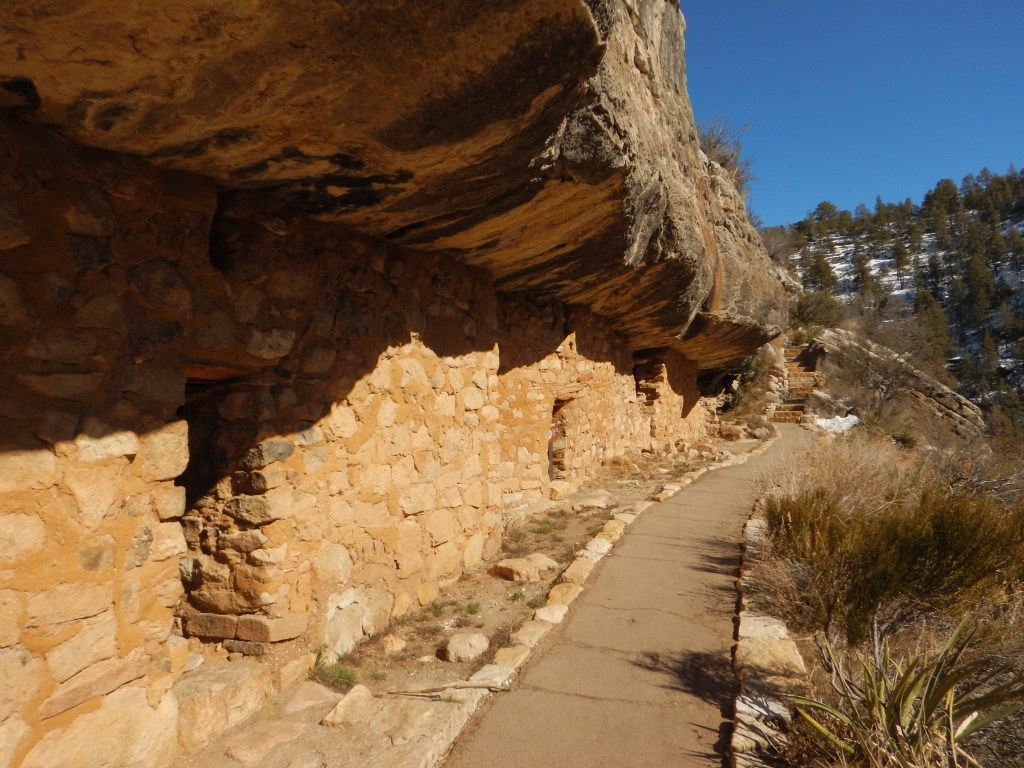 The Sinagua Indians left behind 80 cliff dwellings, on either side of the canyon. The rock alcoves provided the back wall, floor and leak-proof ceiling. No excavation was needed. They added stone walls that acted as outside walls and room dividers. They plastered them with mud to keep them sealed, insulating them from the harsh winds. They would also have retained heat in the winter.