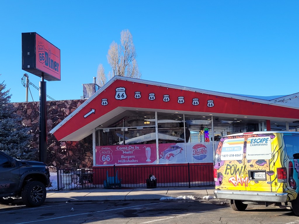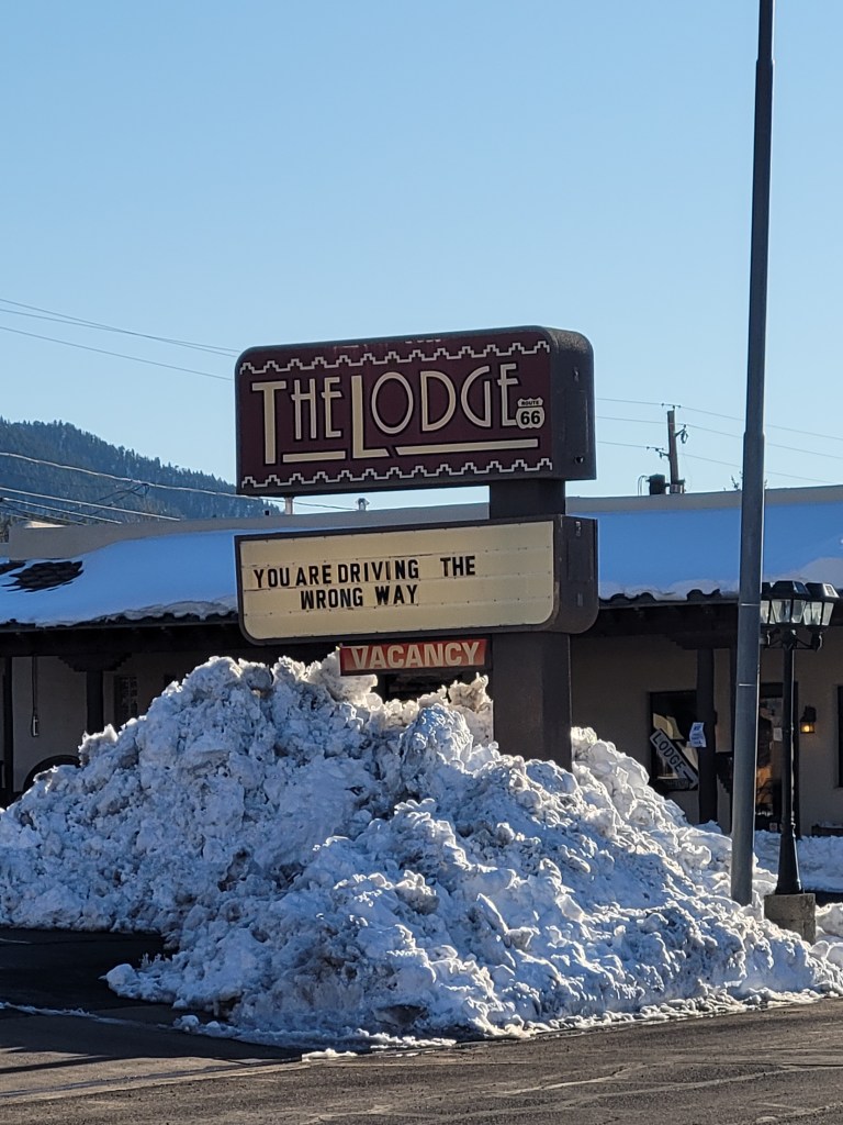 There was a Route 66 Diner directly across the street from me. I was on Route 66! Cool! Although it was later in the day, that diner got me interested to see the rest of the town, so I took a walk up one side of the street and down the other. There was LOTS of snow. It was piled up 2 meters high in places.