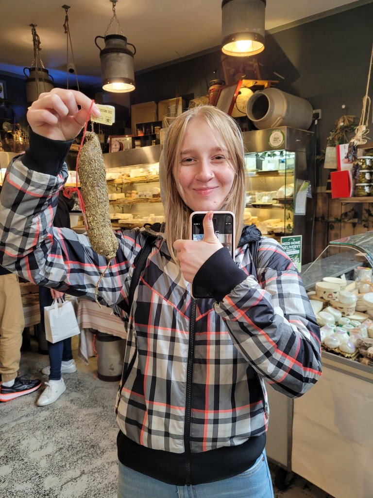 From there we went to Borough Market where they sell everything from fresh vegetables to truffles to donkey sausage – which had Parker laughing and amazed. She talked to the sausage maker for quite some time and even wrangled a free sample.