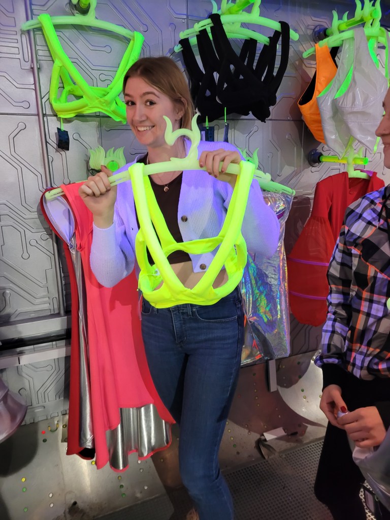 Cyberdog is a futuristic shop that has neon and glow-in-the-dark clothing. Lots of stuff is made of rubber. The girls were blown away by the outlandishness of it.