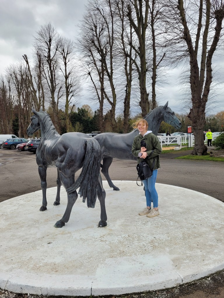 On Monday 4 April, Chandler and I went to Windsor for the season opening of the Royal Windsor Racecourse. Chandler was particularly interested in the grass track and paddock. It was entirely different from what she is used to and works on. We bet on a couple of horses and even won a few pounds. We found a beer cup with the Royal Windsor Racecourse logo on it, and she brought it home as a souvenir.