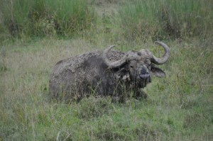 The scene was boring yet fascinating, all at the same time. The hippos didn’t do much, other than grunt and reposition themselves. Several other hippos were meandering closer and eventually found a spot to wallow along side the others. Cape buffalo lazed beside the mud pond, as well.