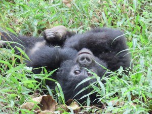 We could hear them before we saw them, Unlike chimpanzees, gorillas are noisy. They have no natural predators, except humans. Sara started whacking me on the chest whispering LOOK LOOK LOOK!