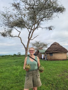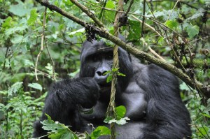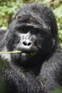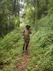 After the dancers, we were given an orientation about the gorilla protocol. Do NOT run – no matter what. Do not look them in the eye. A ranger was to lead us and another ranger would follow. Each had the “popular and famous” AK47. The gorillas we were going to see had been habituated, meaning they were used to humans. It takes months of work with rangers sitting quietly nearby until the gorillas get used to them. There were other bands of gorillas not habituated, as well as elephants and other predators. The rangers would not shoot to kill unless absolutely necessary. Generally, a shot to the air is enough to scare them off.