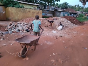 There is a lot of Chinese writing on buildings. The Ugandan government borrowed billions of dollars from China to build roads and other infrastructure. Some of the roads have tolls to raise money to repay the Chinese.