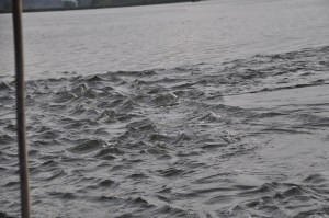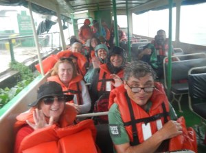 We got soaked, some more than others. Most sat on the leeward side of the boat. Life jackets protected us a bit. In the end, I could wring the water from my shorts leg. Even Chris, the navy guy, said he was judging just how long it was safe on the boat. The rain diminished and we headed out on wet seats. There were flaps that came down around the boat but they were so full of holes it would have been pointless. One flap came down in the wind.