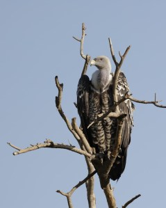 We saw a vulture in a tree. We also saw a wake of buzzards circling in the sky.