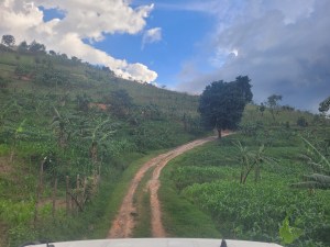 We were up early and on the road by 6:00 am. I don’t think anyone really slept well in anticipation. It was foggy that morning. We laughed – Gorillas in the Mist. The road was bumpy, but we didn’t mind. We were going to see the gorillas!