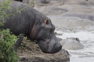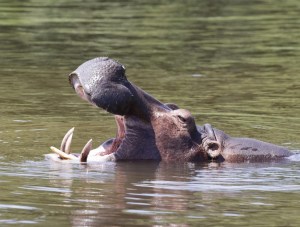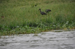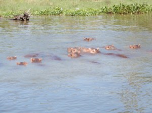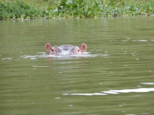 From the boat, we saw lots of hippos! We heard a group of hippos called a herd, a raft, and a pod. According to Wikipedia, they are a bloat of hippos. Every time we saw some the boat captain would cut the motor and we would glide past them so they don’t become agitated and learn to hate boats. Hippos kill 500 people a year (the beloved dog kills 30,000 – yet we let them sleep in our bed….) I asked the captain if he ever had a hippo attack his boat. Yes! Although the boat is big enough that the passengers were not in harm, it was scary. He found out later that this particular hippo had lost her baby and was angry at the world. The other boat drivers learned to give her a wide berth until she settled down.