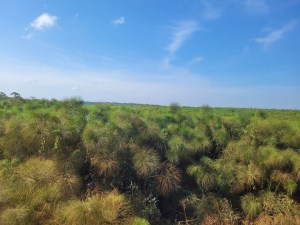 This day we saw children picking weeds in the schoolyard with hoes and brooms. Were they teaching kids not to litter and to care for their environment? We drove by acres of fuzzy papyrus plants.