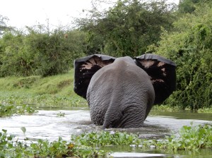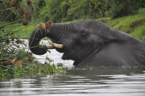 We came upon an elephant entering the water right in front of us. It didn’t seem the least bit bothered by us and waded out to a shrub where it proceeded to eat. We watched, fascinated, only meters away. I think we would have sat there for the rest of the journey had it not decided to go back to shore on its own.