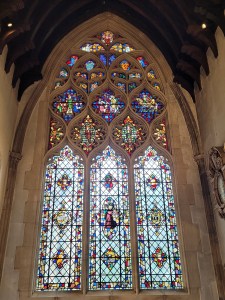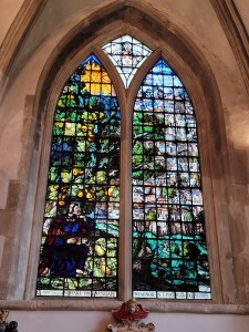 A famous window in the church is the Jonah Window, depicting the biblical story of Jonah arguing with God regarding the forgiveness of Nineveh. Stained glass windows were a way of depicting bible stories to the illiterate masses. This particular window was made in 1633 and is the only window to survive the civil war between King Charles and Parliament.