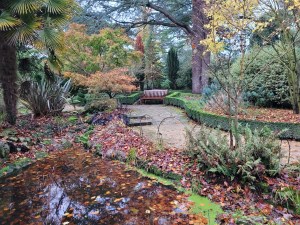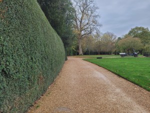 The path continued past beautiful huge trees decorated in autumn colours and along carefully manicured hedges.